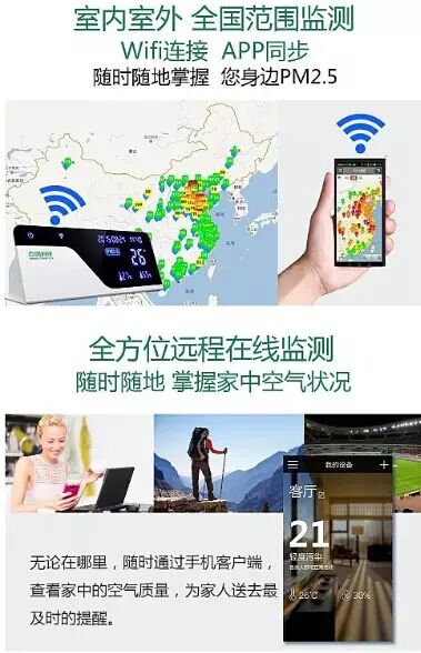 家中的空气,是处于不断流动的状态中。“我的PM2.5”室内空气监测仪的传感器,可以探测微弱污染源,每秒采集一次数据,并实时显示出来,灵敏度高。室内吸烟,是对室内空气污染最重要的一个因素。针对于吸烟过程中室内空气质量是怎样变化的,我们用“我的PM2.5”室内空气监测仪进行了监测。通过下面这段视频,我们一起来观察一下。 除了监测数值准确之外,“我的PM2.5”室内空气监测仪,还有着时尚大方的外形设计,在市场上的同类产品中,脱颖而出。大屏设计,空气质量数值一目了然,切实为家里的孩子、老人、萌宠营造舒适的生活环境,真正兼顾美与健康。